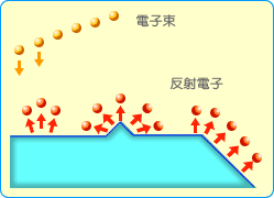 由電子光束機(jī)發(fā)出的電子光束照向欲觀察的物質(zhì)上,該物質(zhì)會(huì)反射出相當(dāng)?shù)碾娮樱?BR>而這些反射出來(lái)的電子,經(jīng)過(guò)分析就可以瞭解物質(zhì)的表面形狀。