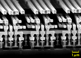 較先端的大型積體電路LSI的銅配線,利用掃瞄式電子顯微鏡拍攝的照片